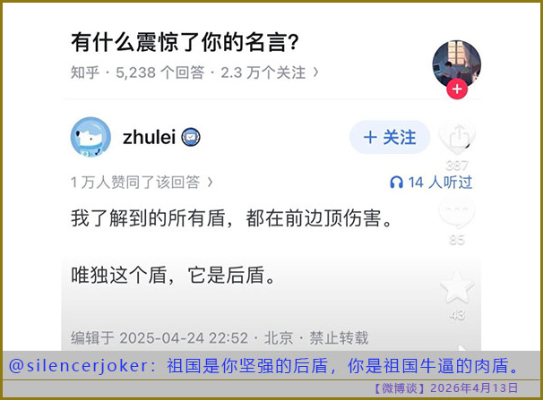 [微博谈 2026/04/12] 列宁式政权都是一脉相承的邪恶